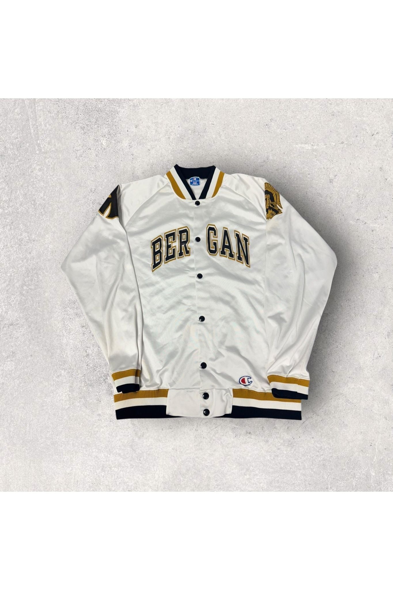 Vintage Champion Made In USA Bergan High School Light Satin Bomber Jacket- L