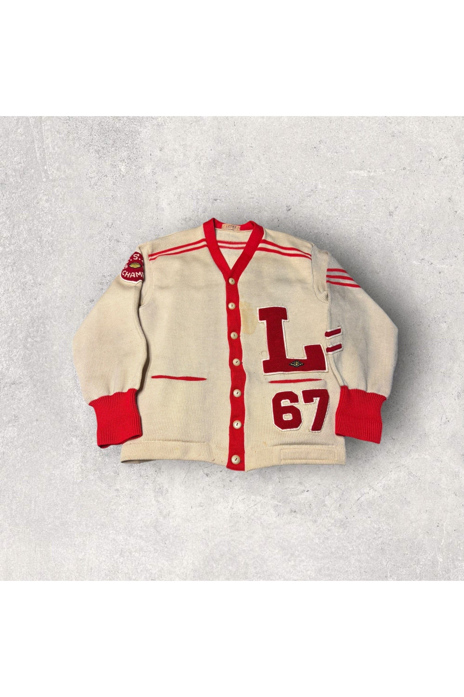 Vintage Logan Knitting Mills 1967 Luther Hill South Highschool Chicago Knit Cardigan Sweater- XL